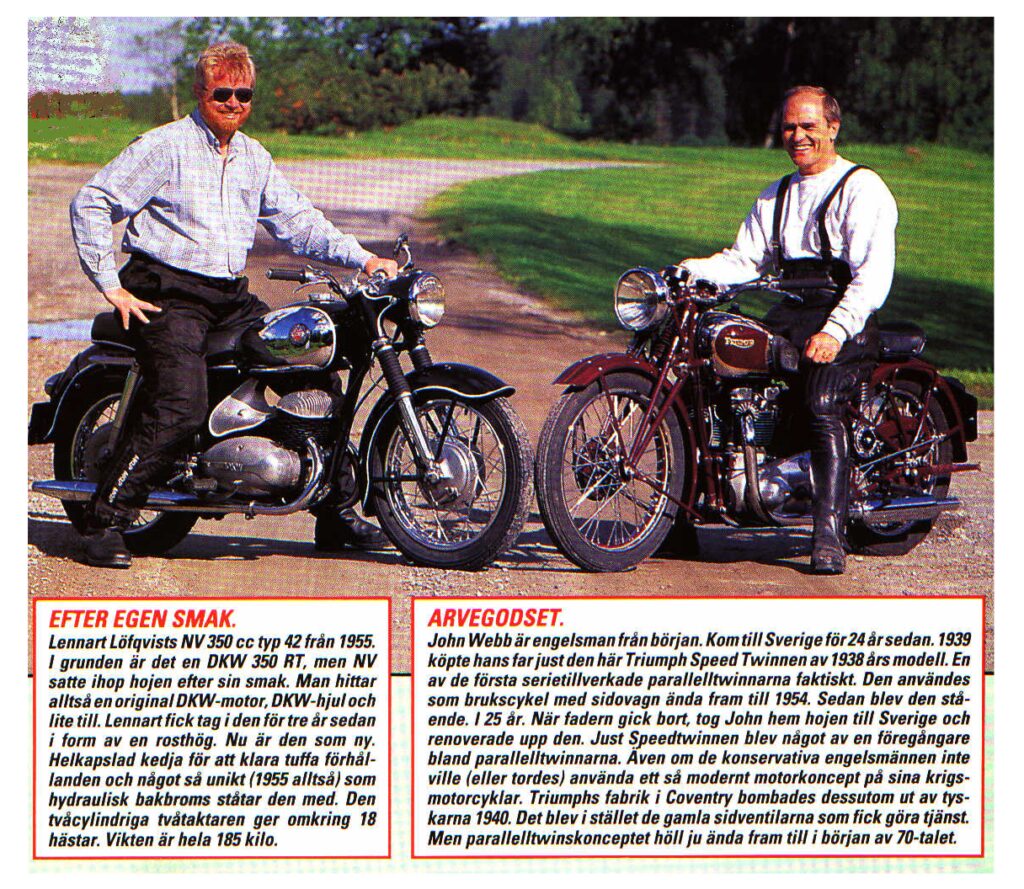 För 24 år sedan fick vi besök av Allt om MC i Hamsta . Härnedan en av bilderna i reportaget av mig och John Webb. Det som inte syns på bilden är att jag på vägen dit, med sonen bakpå kört av 5 ekrar i bakhjulet. Det blev en lugn hemresa och Johan fick skjuts hem med en kompis. Mer bilder och text från reportaget finns i klubblokalen i Hamsta.